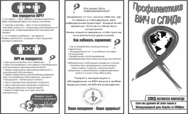 Памятки и брошюры по формированию принципов здорового образа жизни для распространения среди населения.