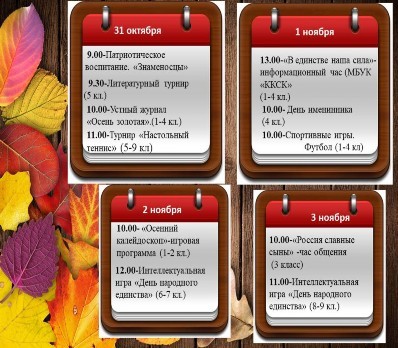 План на осенние каникулы с 27.10 по 31.102025 г.