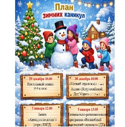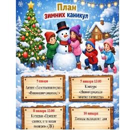 План на зимние каникулы с 29.12.2025 по 11.01.2026 г.